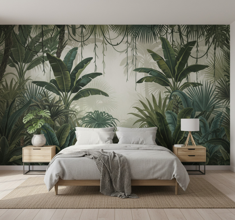 Forest wall mural retro jungle getaway