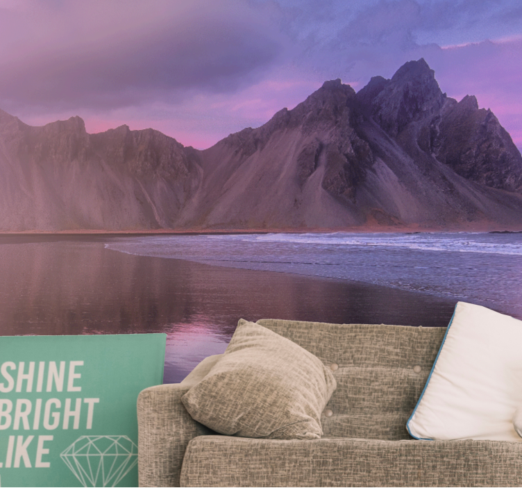 Transform your space with our stunning Landscape wall mural majestic mountain view. This exquisite design features breathtaking mountains rising majestically above a serene ocean, reflected in a tranquil lagoon bordered by soft sand. This captivating landscape photography creates a sense of peace and adventure, allowing you to immerse yourself in nature's beauty from the comfort of your home!