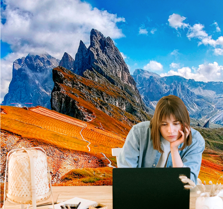 Transform your space with our stunning Landscape wall mural mountain peaks view. This breathtaking design features majestic rocky mountains, rolling hills, and soft clouds that blend seamlessly into a captivating landscape, bringing the beauty of nature right into your home. Ideal for creating a serene atmosphere, this mural invites you to experience the tranquility of the great outdoors from the comfort of your own living space!