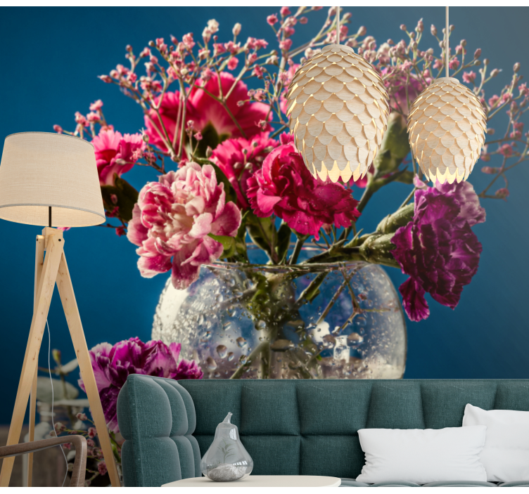 Introducing the Lively bloom composition flower wall mural, a stunning visual masterpiece that brings life to any space! This exquisite design features vibrant clove and glass elements intertwined with beautiful flowers, including delicate carnations. The captivating flora is elegantly arranged in a vase, adorned with droplets that create a sense of freshness and vitality. Transform your room into a serene oasis filled with the essence of nature!