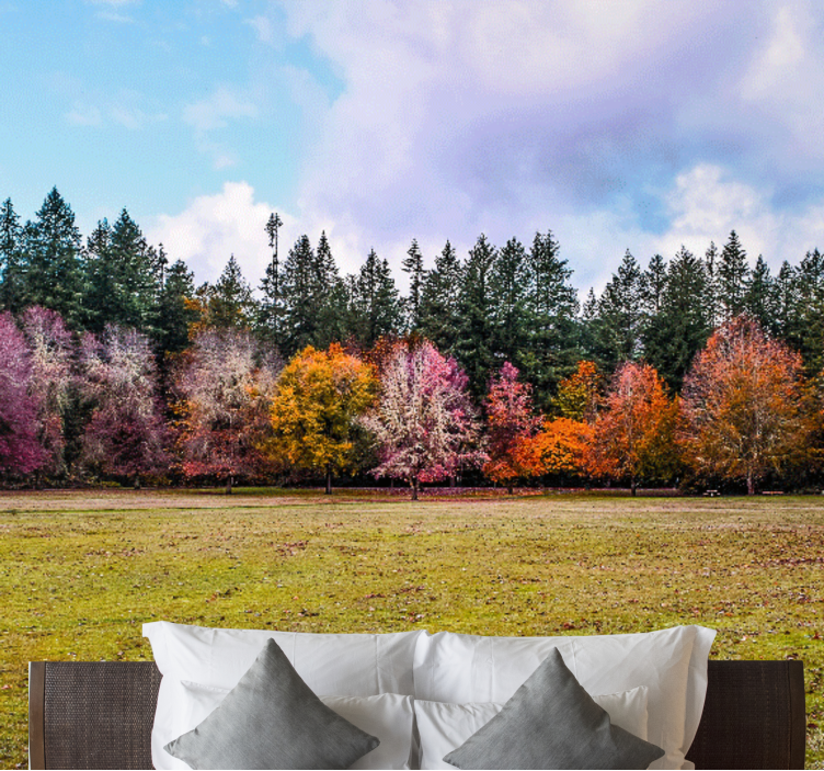 Transform your space with our stunning Nature wall mural colorful autumn forest. This beautifully crafted design captures the essence of an autumn landscape, featuring vibrant trees, a breathtaking forest, and a picturesque field that invites the beauty of nature into your home. The colorful photography brings life to any wall, creating a serene atmosphere that reflects the charm of the changing seasons!