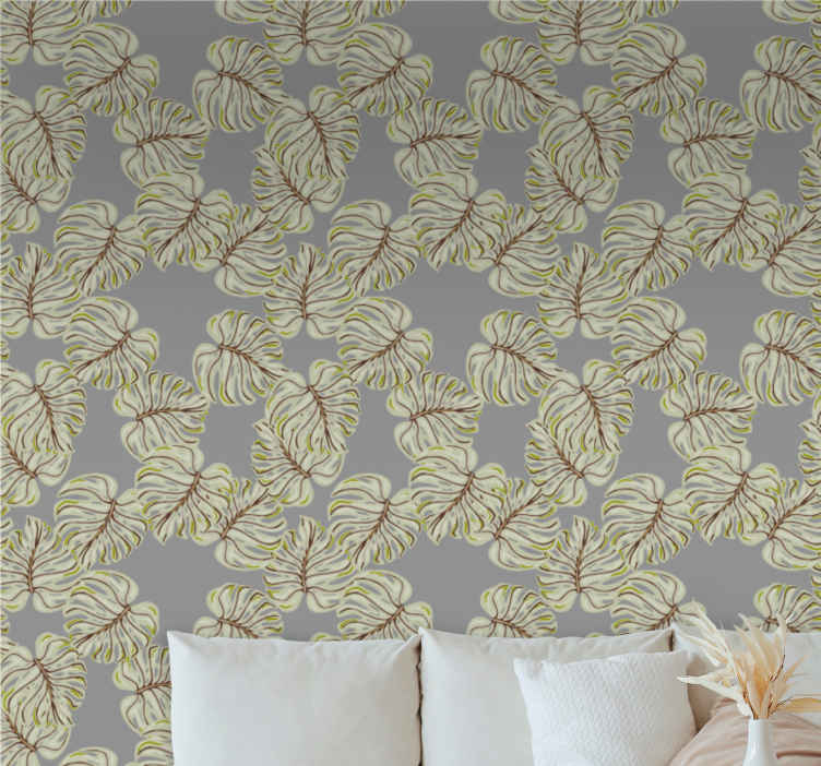Gray minimalistic monstera leaves Lounge wallpaper