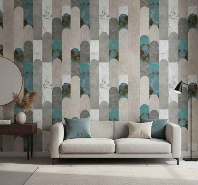 Living room wallpaper arched marble mosaic