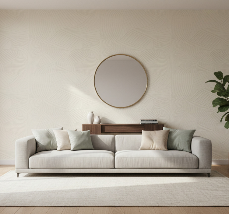Living room wallpaper cream wavy embossed design