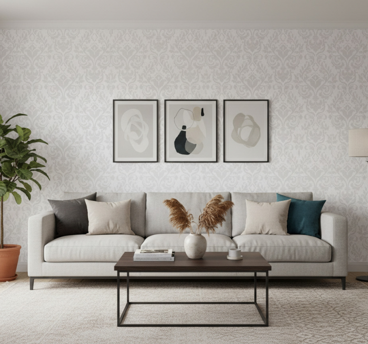 Living room wallpaper grunge damask design