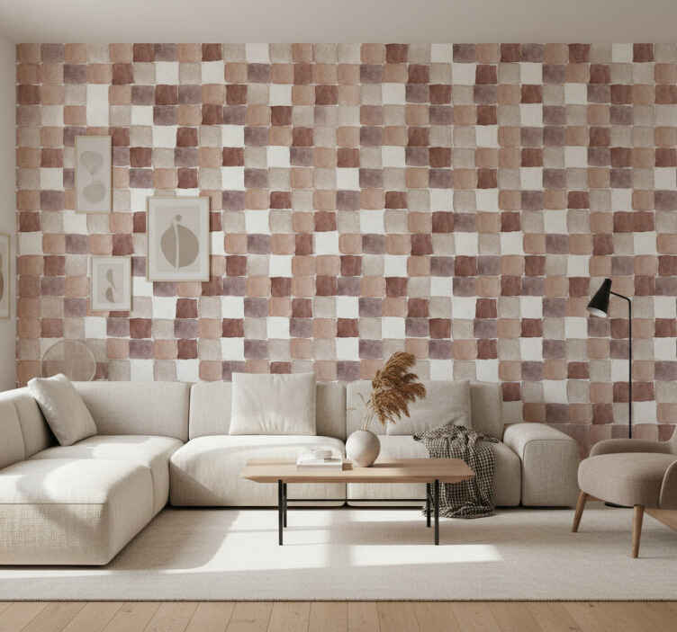 Living room wallpaper in earth tone watercolor