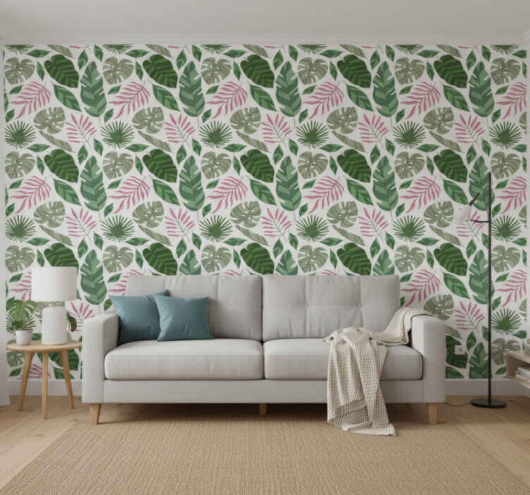 Living room wallpaper tropical greenery design